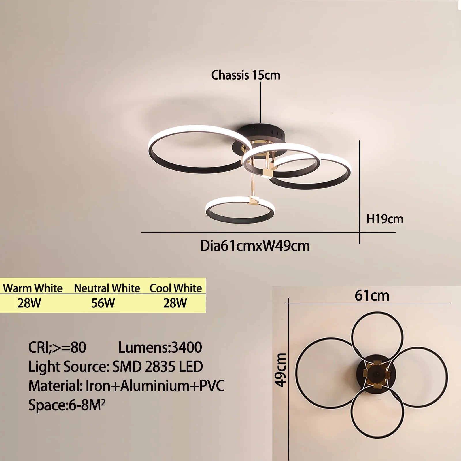 - Modern Ring Design: Sleek, contemporary aesthetic that elevates any interior — available in Black, Gold, and Chrome finishes